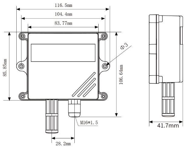 | 外形尺寸 | 宽*高*深: 116.5X 85.85X41.7mm |