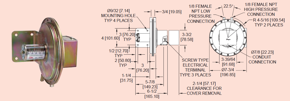 美国dwyer 1640系列高低两位动作,带盲区的浮动触点控制微差压开关简介: