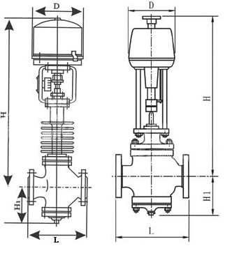 ZDLN 电子式电动双座调节阀,由3810L型(或PSL系列)直行程电子式电动执行机构和直通双座阀组成。内含饲服功能,接受统一 的 4-20mA 或1-5V·DC的标准信号,将电流信号转变成相对应的 直线位移,自动地控制调节阀开度,达到对管道内流体的压力、流 量、温度、液位等工艺参数的连续调节。 座阀有上、下两个阀芯球,流体作用在上、下阀芯上的推力, 其方向相反而大小接近,不平衡力很小,允许压差大,额定流量系 数比同口径的单座阀大,但该阀的泄漏较单座阀大。 适用于对泄露量要求不严格,阀前后压差较大的干净介质场合。
