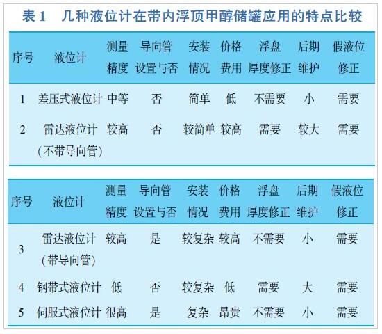综上所述,针对内浮顶甲醇储罐液位计的选型,笔者分别阐述了几种液位计在该特定场合的设计选型情况。 为获得对几种液位计的认识,对其进行了比较,