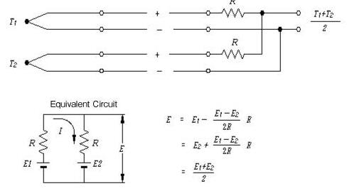 利用这种关系,当对于r1-r2插入足够大的R1'和R2'时,线电阻,可以降低平均温度测量电路的误差。而且,由于容许线路电阻根据接收器的类型而受到限制,插入电阻值必须在允许范围内确定。