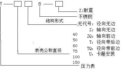 A.表盘直径:型号命名规则中我们首先要确定表盘直径,一般直径系列有¢40、¢50、¢60、¢75、¢100、¢150等六种,根据使用实际要求确定一种。