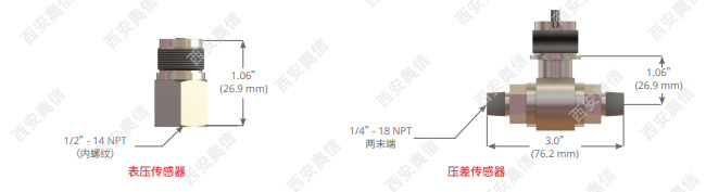 压差:316L 不锈钢,焊接隔板,1/4” NPT (外螺纹)压力接口,压阻应变计硅元件,硅油填料。介质温度限制:-40 到 257 °F (-40 到 125 °C)