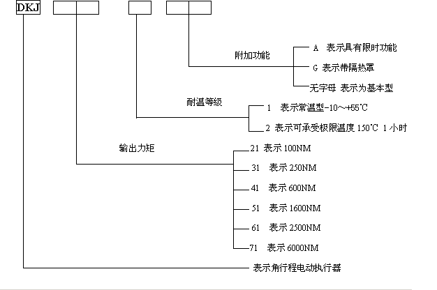 DK:普通型J:角行程510:输出力矩