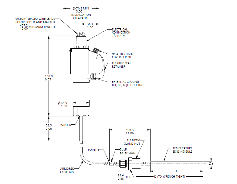 毛细管式SOR温度开关203NN-K135-U9-C7A美国SOR温度开关
