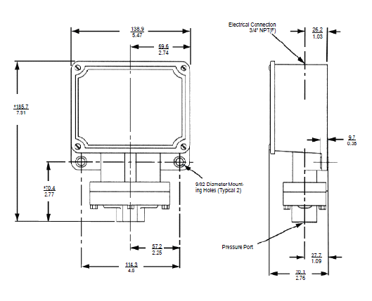 66V1-K3-N4-B1A 双点压力开关, 橡胶膜片, 压力范围:12 to 100 psi 0.8 to 7bar