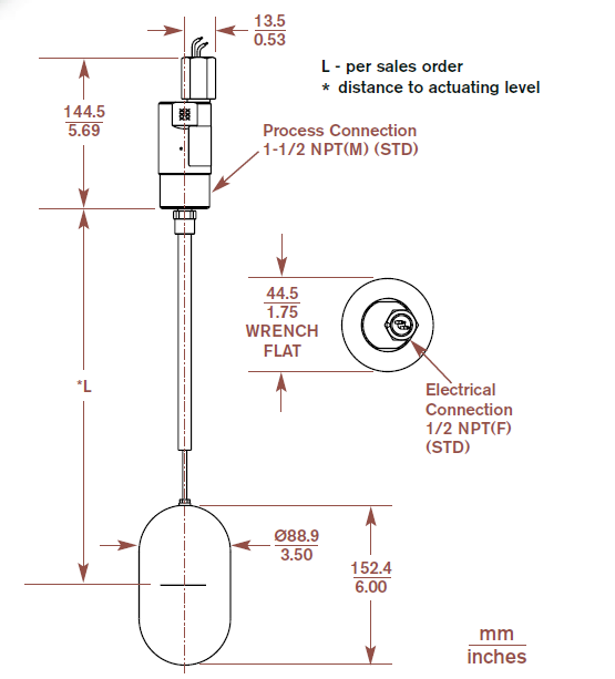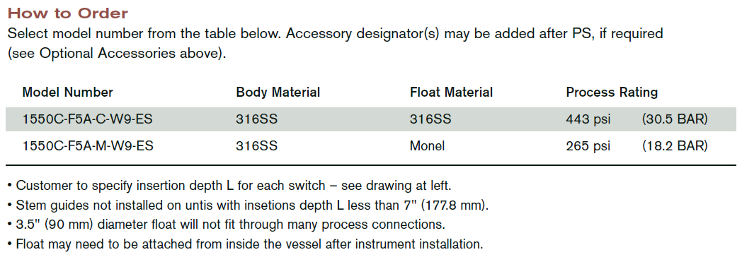 SOR液位开关,1550C-F5A-M-W9-ES,美国顶装浮球液位开关