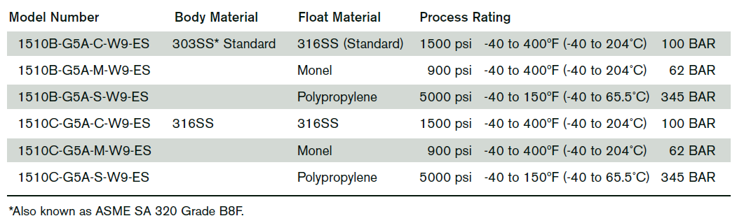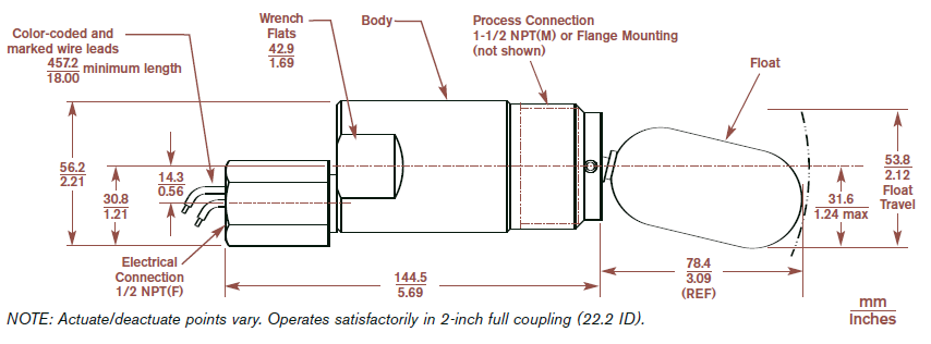 1510C-G5A-S-W9-ES,美国SOR浮球液位开关,SOR侧装液位开关
