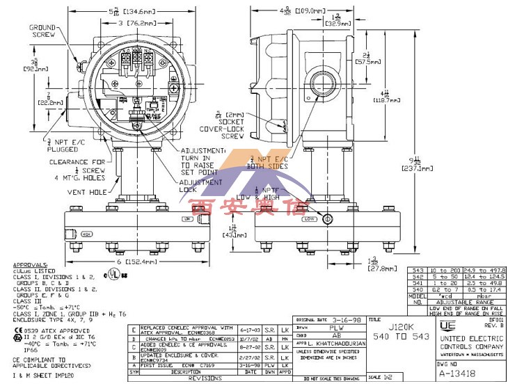外壳等级:外壳等级为4X。 Class I Division 1的开关外壳等级为7;ClassII Division 1开关外壳等级为9。IP66。