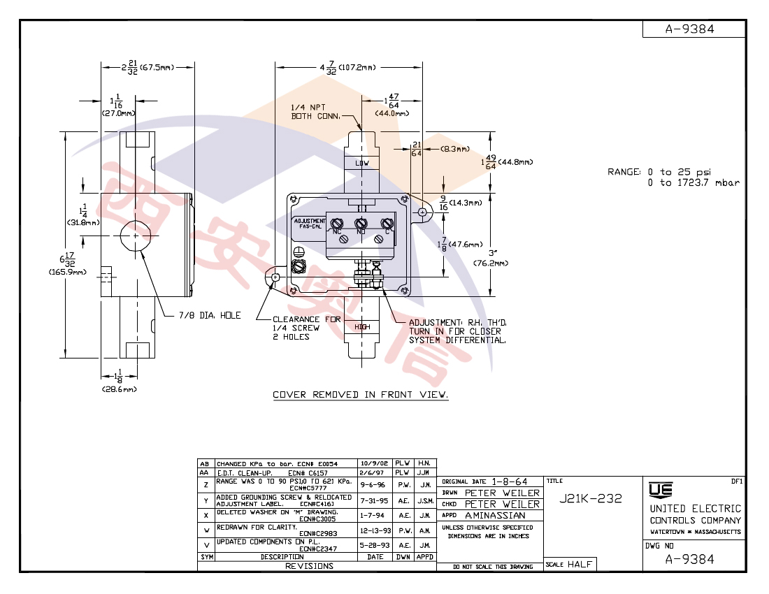 J21K差压开关监控两个系统之间的压力或真空吸尘器和感官过度流量偏差,或验证,过滤器被堵塞。J21K的 - 环氧涂层外壳,坚固耐用的设计密封的金属波纹管 - 适合于苛刻的应用程序。广泛应用于制冷(冷水机组)和压缩机应用程序的,的,可用于过滤器的状态监测和证明J21K流程。