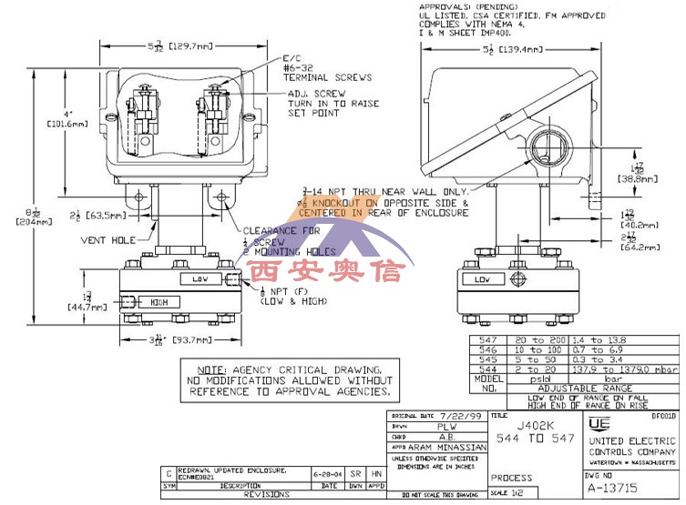 J402K-546,美国UE差压开关,UE开关接线图