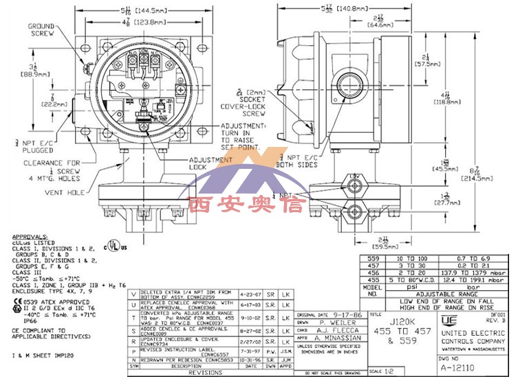 J120K-457美国UE差压开关0.2-2.1bar防爆差压变送器