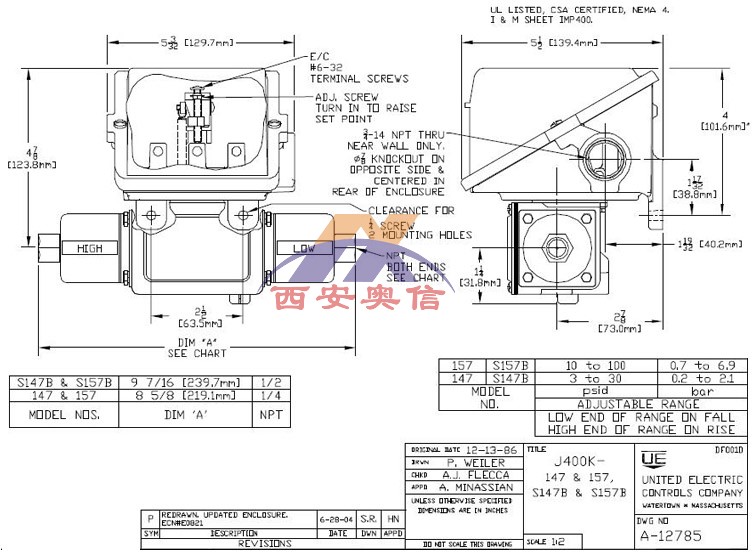美国UE压力开关 美国UE UE温度开关 UE差压开关 UE炉膛负压开关 UE高压开关 UE微压开关 J400K-S147B-1010