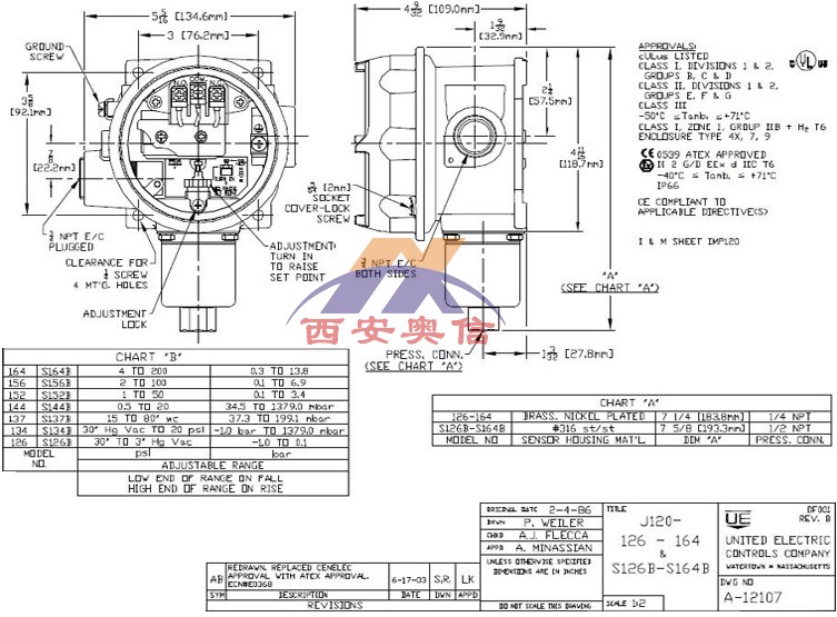 美国UE压力开关 美国UE UE温度开关 UE差压开关 UE炉膛负压开关 UE高压开关 UE微压开关J120-134-1195