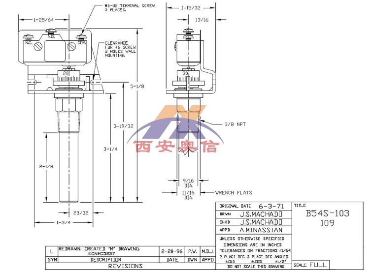 B54/B54S/C54/C54S/C54A/C54AS-103/109-M201-XY468美国UE温度开关54系列部分产品具体型号和参数: