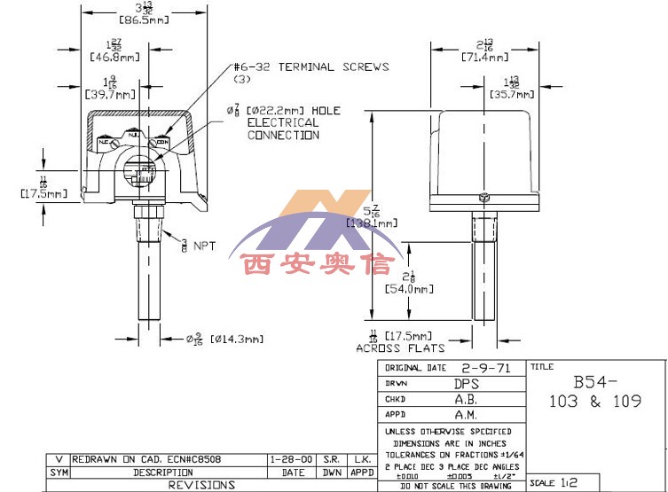 B54/B54S/C54/C54S/C54A/C54AS-103/109-M201-XY468美国UE温度开关54系列部分产品具体型号和参数: