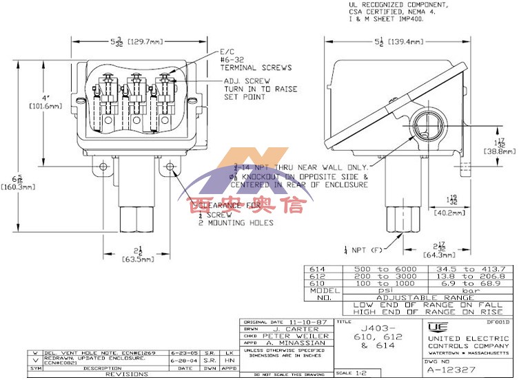 400系列压力开关是一种多用处的系列开关,特别适用于需要多点输出和控制时。双点和3点设定提供多点的输出,可用于报警和关断,预警和报警,高/低限个液位控制功能。此系列开关有多种微动开关和多种过程接口的选择,使得400系列开关可以满足各种不同的需求。