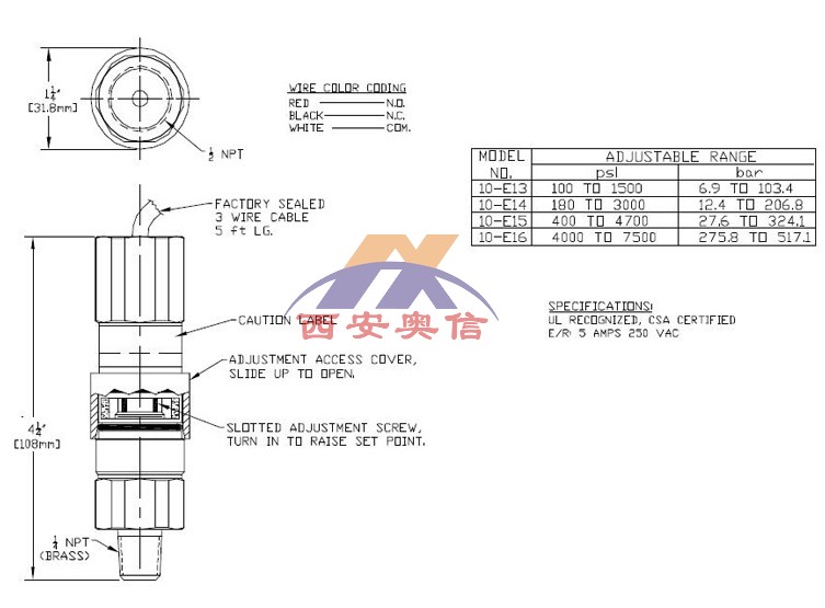 10-E16美国UE压力开关,275.8-517.1bar