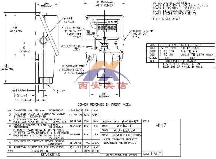 H117-704 美国UE全密封型机械压力开关 UE防爆压力开关 美国UE开关