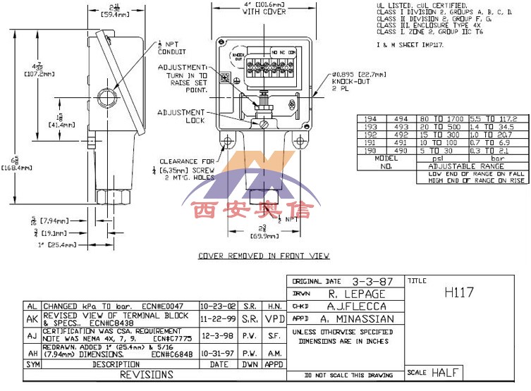 H117-490 美国UE油压压力开关 防爆压力开关 UE压力开关