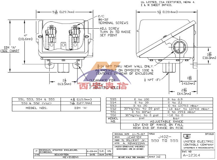 • J402-550美国UE压力开关 -1~0bar真空 2*SPDT