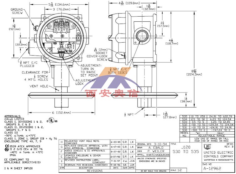 J120-531美国UE不锈钢炉膛防爆开关2.49KPa