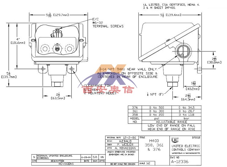 H400-358,美国UE压力开关,UE机械式压力开关,美国UE网站