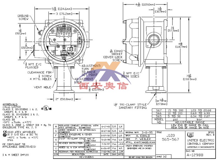 J120-565/J120-566/J120-567美国UE卫生级压力开关 具体压力参数