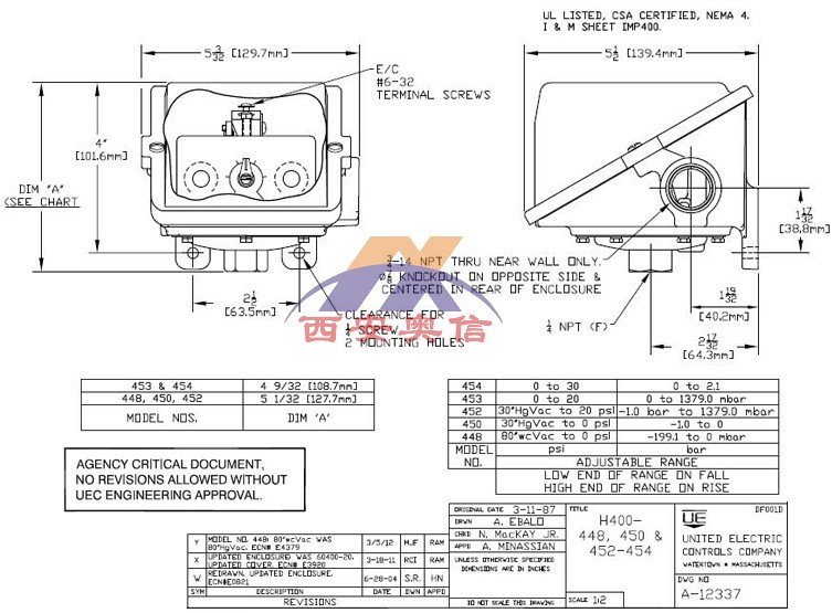 400系列压力开关是一种多用处的系列开关,特别适用于需要多点输出和控制时。双点和3点设定提供多点的输出,可用于报警和关断,预警和报警,高/低限个液位控制功能。此系列开关有多种微动开关和多种过程接口的选择,使得400系列开关可以满足各种不同的需求。