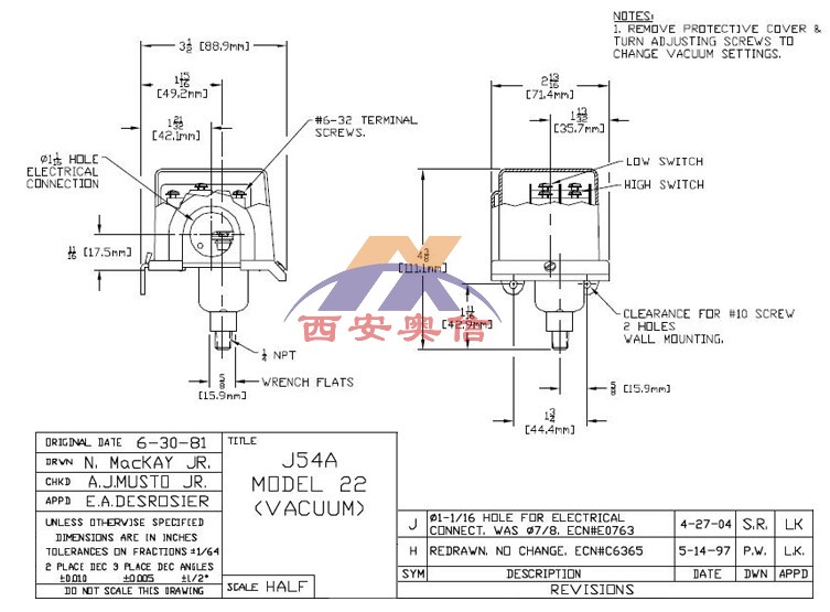 J54/J54A/J54S/J54AS/H54/H54S-22-M201-XY468 丁晴橡胶膜片和O型圈,1/4NPT外铝制压力接口,*于处理温度低于93℃