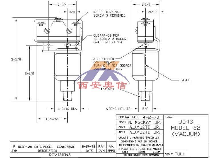 美国UE压力开关 美国UE UE温度开关 UE差压开关 UE炉膛负压开关 UE高压开关 UE微压开关 J54S-22