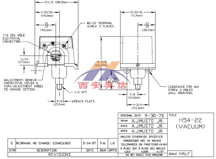 J54/J54A/J54S/J54AS/H54/H54S-22-M201-XY468 丁晴橡胶膜片和O型圈,1/4NPT外铝制压力接口,*于处理温度低于93℃