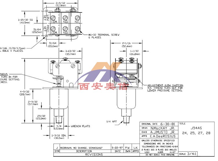J54/J54A/J54S/J54AS/H54/H54S-22-M201-XY468 丁晴橡胶膜片和O型圈,1/4NPT外铝制压力接口,*于处理温度低于93℃