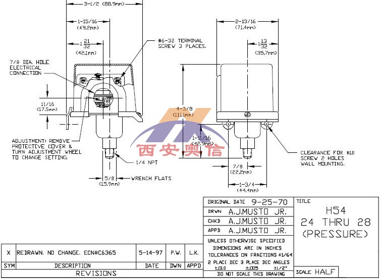 J54/J54A/J54S/J54AS/H54/H54S-22-M201-XY468 丁晴橡胶膜片和O型圈,1/4NPT外铝制压力接口,*于处理温度低于93℃