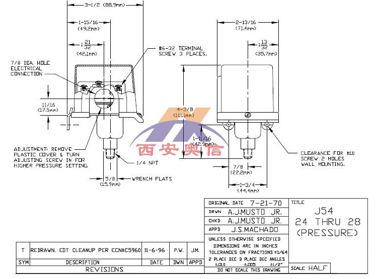 美国UE压力开关 美国UE UE温度开关 UE差压开关 UE炉膛负压开关 UE高压开关 UE微压开关 J54-28