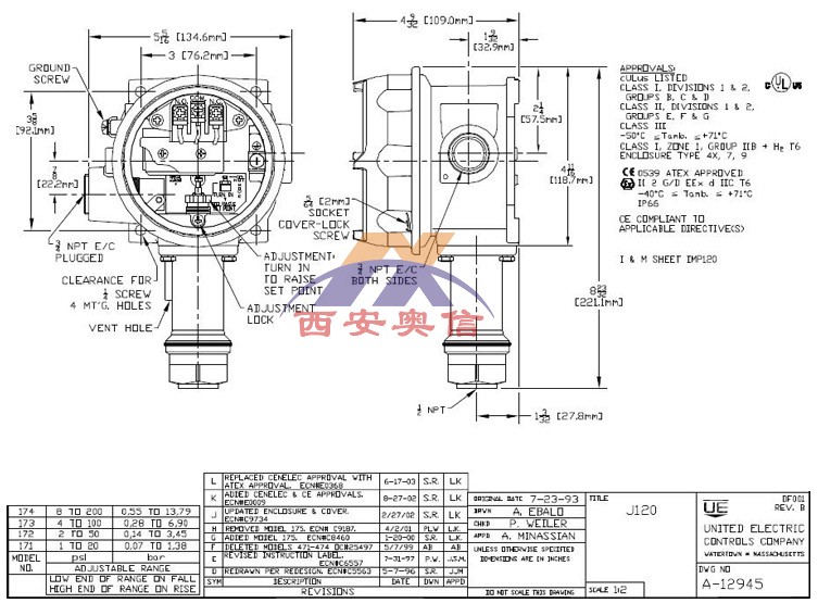 美国UE压力开关 美国UE UE温度开关 UE差压开关 UE炉膛负压开关 UE高压开关 UE微压开关 J120-173-1190 120-173-1195