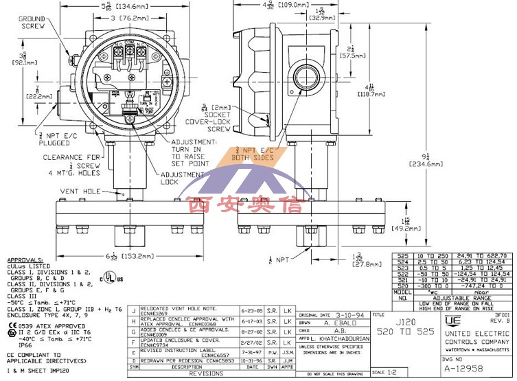 美国UE压力开关 美国UE UE温度开关 UE差压开关 UE炉膛负压开关 UE高压开关 UE微压开关 J120-524-XC004