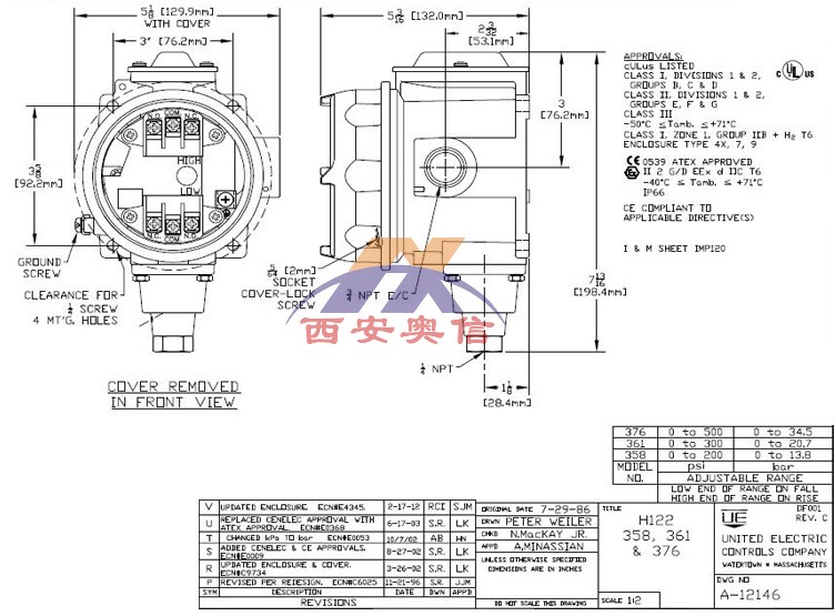 H122-358 H122-361 H122-376 美国UE压力开关 双点防爆 带参考刻度 现场可调整设定值。