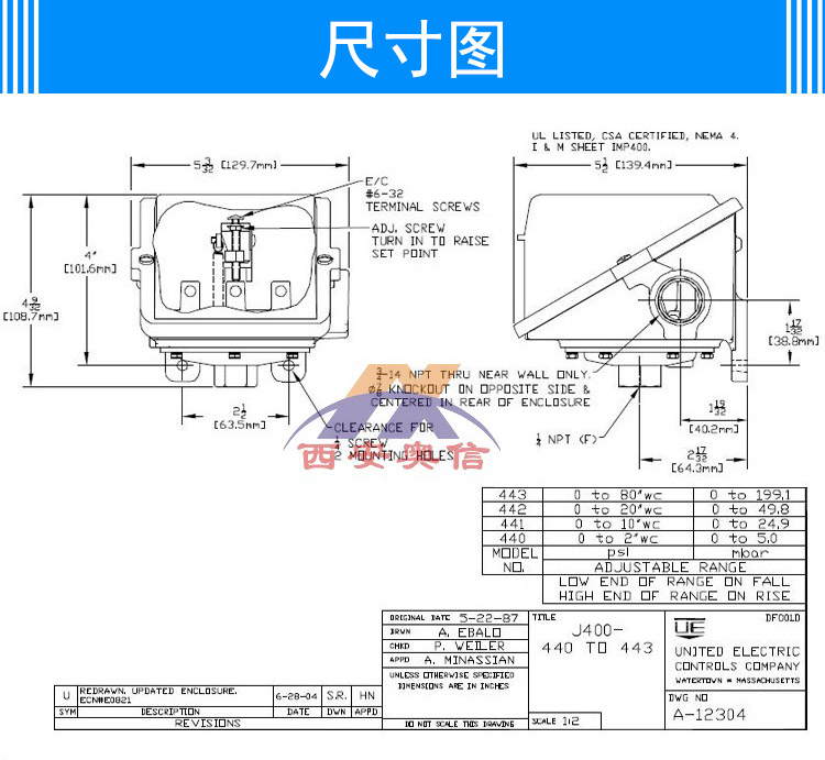 J402-442-M202 双点微压开关 美国UE炉膛压力控制器 美国UE开关