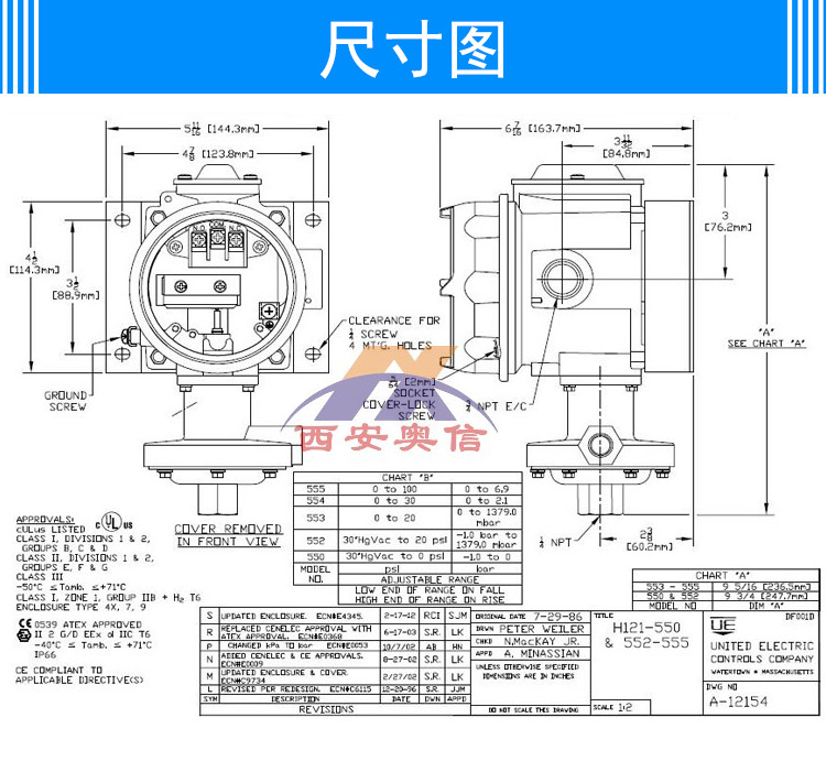UE防爆压力开关 J120-552-M201 焦炉煤气耐腐开关 美国UE开关 UE开关