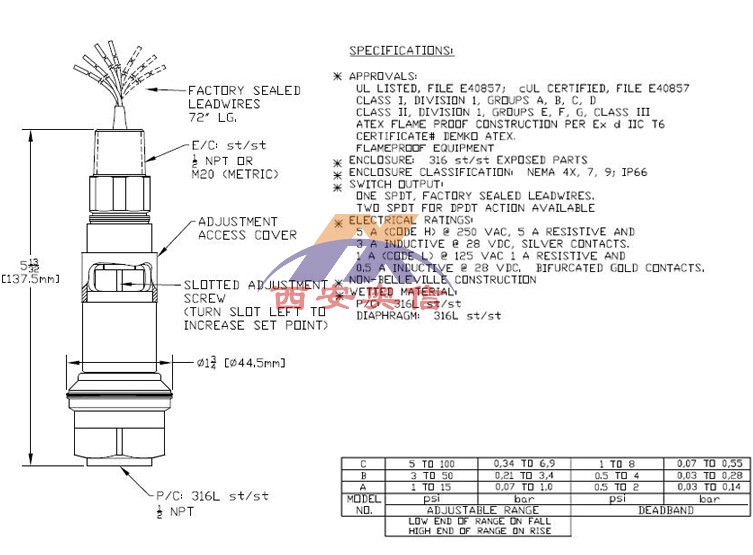 12SHDN9A-M201 美国UE防爆不锈钢开关 12系列海洋平台棒状开关 美国UE UE压力开关