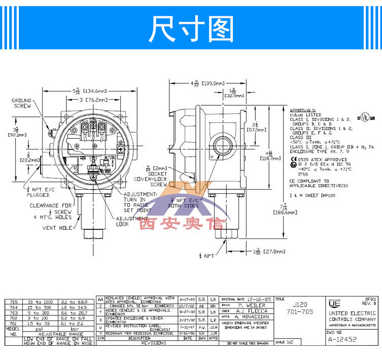 J120-705-M405-M201 高压防爆开关 美国UE开关 美国UE压力开关