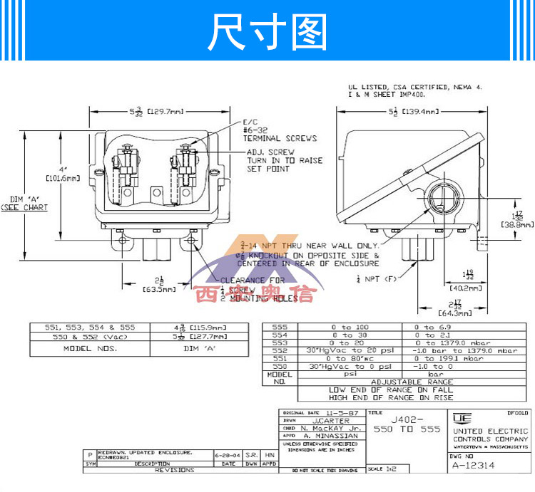 J402-522-M202 锅炉烟气开关 美国UE双输出报警开关 H100-522 美国UE