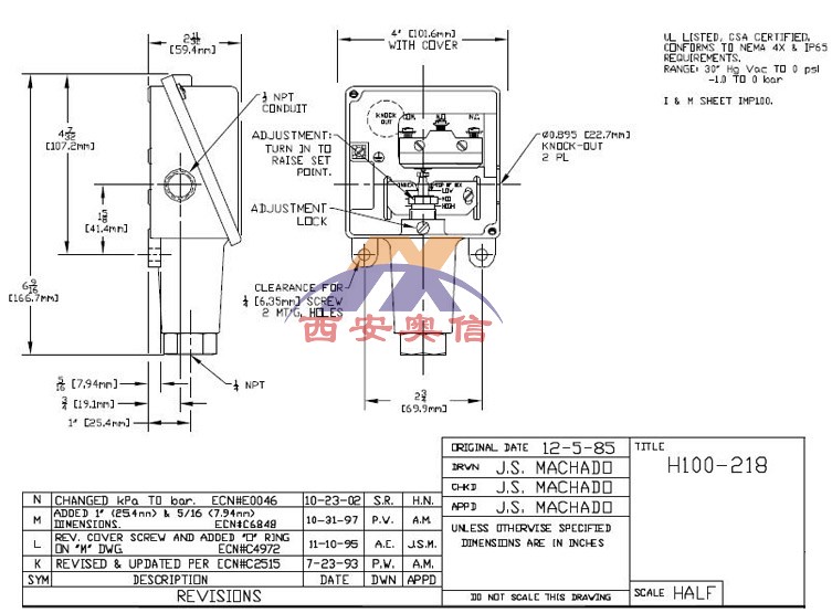 美国UE压力开关 DPDT双刀双掷型 设备报警+控制型
