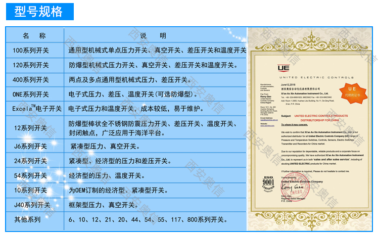 美国UE压力开关 DPDT双刀双掷型 设备报警+控制型