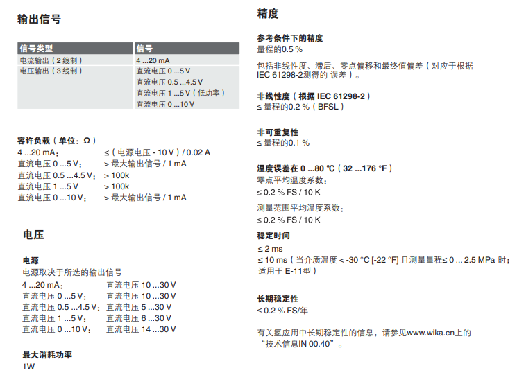 该型号压力变送器可配以多种模拟信号,比如 4 ...20 mA,DC 1 ...5 V 的低功耗输出信号等。变送器具有高抗震性和压力脉冲耐受性,并能有效防止水分侵入。另外,这两个型号的变送器达到 IP 67 (NEMA 4x) 防护等级。