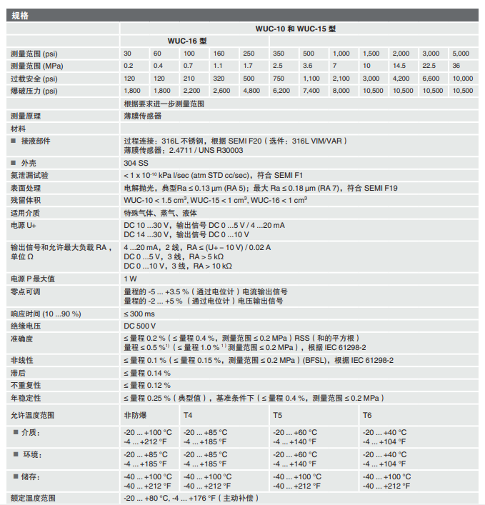 德国威卡WUC-10高纯传感器 WUC-15具体参数:
