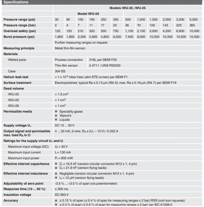 德国威卡iWU-20传感器iWU-25高纯iWU-26防爆传感器具体参数: