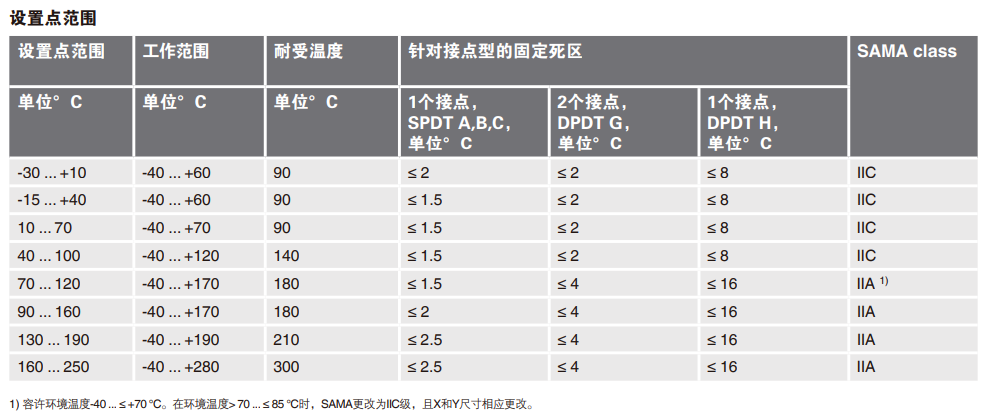 TCS温度开关量程