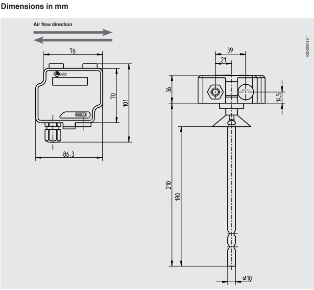 此款空气流速就计可选配开关输出,用于灵活控制通风管道和空调系统中的部件。
